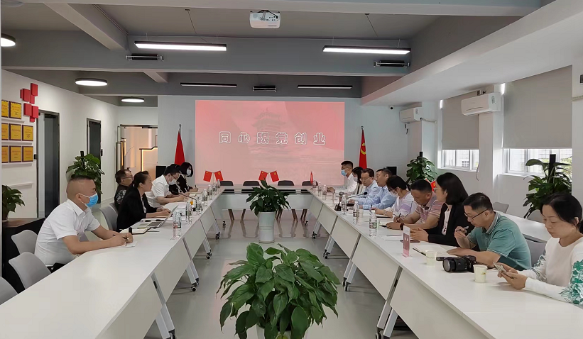 公司廖麗娟總經理向陳書記一行介紹了同心孵化器跟黨創業在工商集群登記、科技創新、成果轉化、軍民融合發展、鄉村振興等科技創新高質量融合發展成果。
